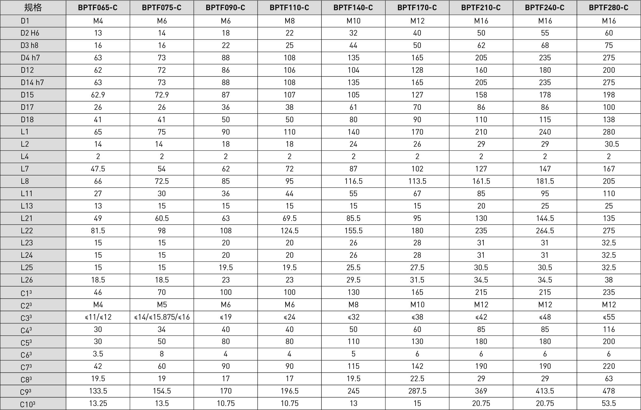 技术参数单位减速比BPTF065BPTF075BPTF090BPTF110BPTF140BPTF170BPTF210BPTF240BPTF280